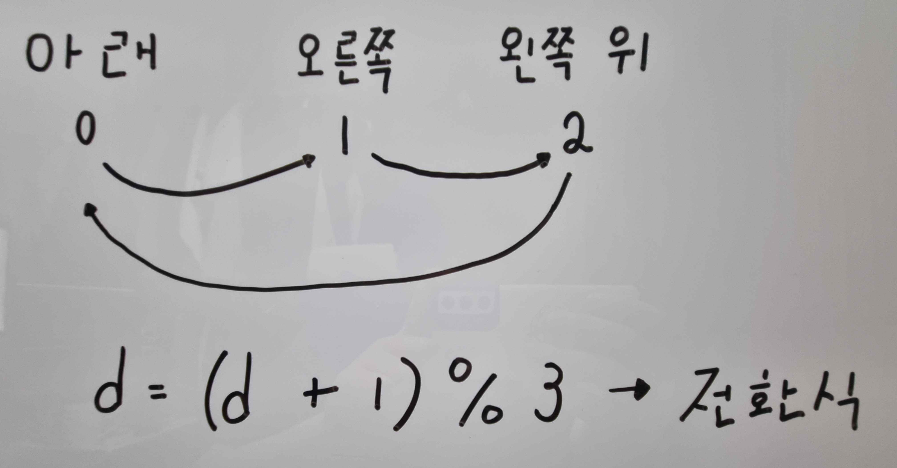 | 방향 | 아래 | 오른쪽 | 왼쪽 위 |
