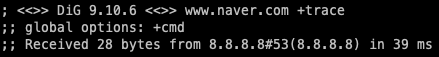 ANSWER SECTION에 최종 IP 레코드(A)가 표시되면 이름 해석이 완료된 것이다.